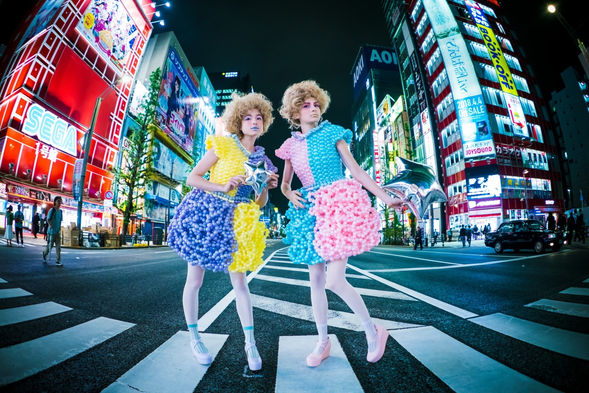 でも私はballoon clothesを多くの人の目に触れ、知ってもらえるように東京の街中、ラスベガス、 NYの地下鉄など様々なところでフラッシュ的にファッションショーをしてきました。 今回も同じように製作し、様々なところで写真を撮り、その写真を壁に貼ります。 それはこの短い寿命のお洋服の人生そのものです。 そして抜け殻となった、バルーンドレスを今回展示することは、私自身短時間で終わってしまうバ ルーンドレスへの愛着なのかもしれません。 そういう儚さ、そして、そこに対する想い表現しました。